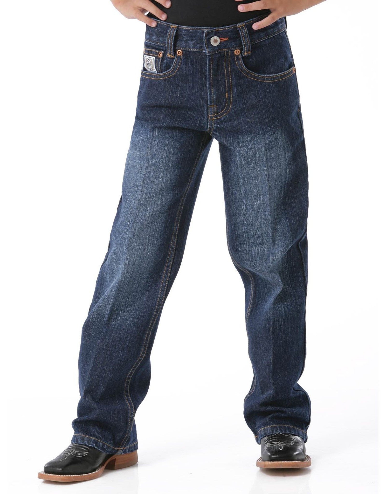 Cinch Boys' White Label Mid Rise Relaxed Fit Straight Leg Jeans - Dark Stonewash
